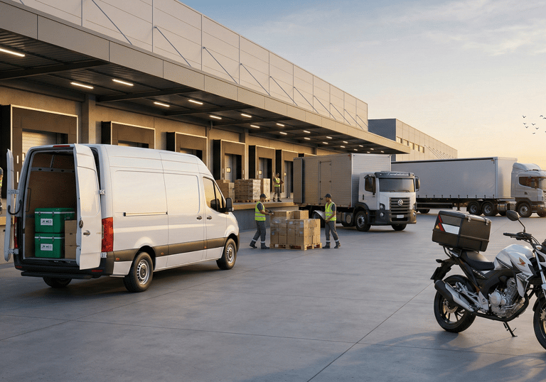 Atuamos no RJ e SP com motoboys, vans e caminhões, garantindo transporte eficiente e armazenamento impecável.